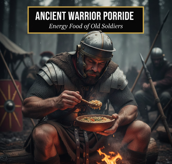 Ancient warrior porridge was a thick, hot mix of grains, water, and sometimes nuts or dried fruits. Different armies had their own versions—Roman, Greek, Chinese, Mongolian, and even Viking warriors relied on it.