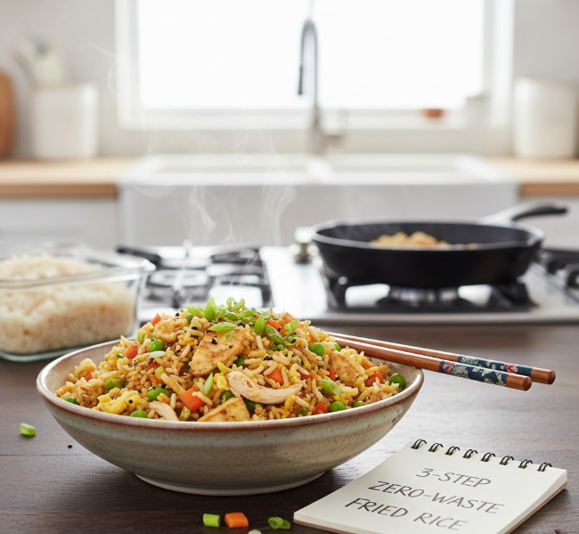 Have you ever opened your fridge and found leftover rice sitting there, looking a little sad and lonely? 😅 Don’t toss it! Leftover rice can be transformed into a delicious, quick, and zero-waste meal: fried rice. Today, we’ll explore a simple 3-step method to make fried rice that’s not only tasty but also helps reduce food waste.